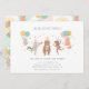 Invite your friends and family to celebrate your little party animal with this fun, colourful and exciting birthday party invitation. This design features an adorable bear, bunny, fox, squirrel and deer! With colourful accents we're sure you'll love. Find matching items in our shop.