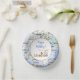 Add a special touch to your little boy or girl's big day with this custom jungle-themed birthday party paper bowl. There is a lion with a top hat, a giraffe with a bow tie, and an elephant with a party hat and balloons. All safari animals are painted in watercolor and are sitting on a train. There is also a train, rainbow, star, sun, and cloud pattern on blue. Text may be modified per your needs. Right now it says "Happy Birthday" and is followed by the kid name and age.