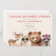 Wild one party animals rock n roll / music festival inspired woodland birthday party theme featuring bear cub with pink fur and pink lightning bolt over one eye, racoon with pink mohawk and heart over one eye, fox with daisy sunglasses, and deer fawn with pink spots.