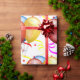 Wrap your gifts in this party-style wrapping paper. This paper features a red blue and yellow balloon print all over the design. There are also multicolor streamers in the background. A classic paper for your party gifts.
