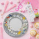 Colourful cartoon characters on a paper plate, perfect for adding fun to your next party or gathering.