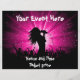 Party flyer with silhouette of a female singing in front of a crowd of people