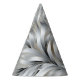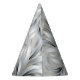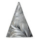 This party hat is shown with a silver color feathers type art print.