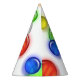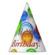 Happy Birthday. The text is written in orange with a black shadow. The background image is a graphic depiction of multiple bubbles in different sizes and varying colours (blue, green, white, yellow, red, orange).
