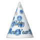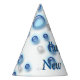 Happy New Year. Text is written in medium blue with a black shadow. The background image is a graphic depiction of multiple bubbles in different sizes and varying shades of blue and white.