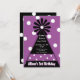 A cute and whimsical bold black party hat and purple and white polka dots is a fun birthday party invitation for any age!