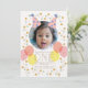 Party Hats & Balloons Pink Photo 1st Birthday Invitation