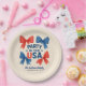 This design features a 4th of July party theme "Party in the USA" with red and blue bows on pastel blue and pastel pink background. This product can be easily personalised. If you need help with the customisation of the product or need matching products kindly please contact me via Zazzle.