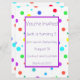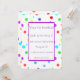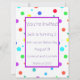 This invitation is printed on both sides and is fun, colourful and of course can be customised. These invitations have brightly-coloured spots and dots printed on both sides. The front has a white area for your personal message which is framed in purple. Choose your font and colour of font. These will be a fun addition for a child’s birthday party. There's no pink in these so they can be used for a boy or girl.