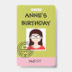 Call in the form of a badge! You can put the picture of the birthday party or sponsor of the event, or the guests. Personalise as you like.