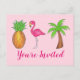 Party Invitation Pink Flamingo Palm Tree Pineapple Postcard