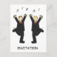 Two cartoon grooms in suits dancing. The image is set against a crisp white background and accompanied by the word 'Invitation'.