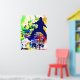 The party life poster has the words party and life on the picture. There is a person jumping or dancing on a graffiti look background.