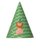 A bold and bright green hat with aqua blue wavy stripes and a party lion is a fun addition to any kid's safari themed birthday celebration.