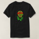 I give wanted to give this a 4 instead of a 5 because these Basic DARK T0shirts run unexpectedly SLIM or Narrow. Which is great if you do not have a potbelly, but I have a paunch. It isn't the shirt's fault that I've got a beer belly. The design and shirt itself is a quality cotton shirt. The color is more of a deep purple, but still a very pretty color. The Basic DARK T-shirts run a bit SLIMMER than the Basic Ts. The neck is a fraction narrower (or seems to be narrower) also. I'm a paunchy middle-aged woman and my neck is 12 inches (31cm) thick and the neckline fell about the same as in the photo of the man, and I had the desire to tug it a bit. So if you're a thick necked man or like loose shirts, be aware these are slimmer shirts. Once I get rid of my lockdown paunch it'll look great. The shirt washed well in cold water with no apparent bleeding. We don't have a dryer, so it hung dry. Did not shrink. Love the colors and the design. The design looks smaller on my shirt than it does on the model on-line. But still, it looks good on the shirt. The printing looks as it does on the model, just the size seems fractionally smaller. Washed garment in cold water, hung dry and design appeared unaffected.