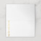 This folded name place card is shown in white with a elegant style gold leaf scroll print, card has a gold coloured inside.