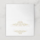 This folded name place card is shown in white with a elegant style gold leaf scroll heart print. card has a gold coloured inside.