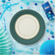 A special occasions or everyday day paper plates designed to look like china plate in design. Decorated with an ivory background with a new shade of custom Emerald Sea colour rim and a coordinating inner trim colour.