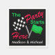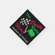 These cocktail paper party napkins are great for any type of tailgaiting or race party with a green flag and a black and white chequered flag. Personalise with a name, race winner or other words for your own message. The design is a black and white chequered flag and a green flag with the words "The Party Starts Here". Its all on a black background that you can customise to another colour. Fully customisable for your party or other event. This design is original art by Phyllis Dobbs. Great for all racing events, from car auto, motorcycle, bikes, and others.