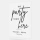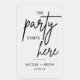 The Party starts here modern wedding welcome sign features calligraphy signature font and the Bride and Groom's name along with wedding date. Click "design tool" button to customise further.