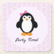 Party Time Girl Penguin Square Paper Coaster