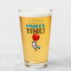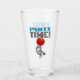 Use "Personalise this template" to change the "PARTY TIME!" text, text changes are reflected on both sides. A glass featuring a cute opossom in a striped party hat, floating by on a big red balloon while blowing a star spangled party blower.