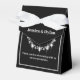 This party favour box is shown in an elegant black and white colour with a diamond sparkle accent in the front centre.