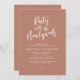 Mark the beginning of your forever with elegance using our contemporary rustic beautiful terracotta brown earthy themed wedding elopement celebration invitation card, "Party with the newlyweds". Perfect for couples extending their joyous occasion, this invitation exudes sophistication with a hint of playfulness, setting the stage for a memorable event. Adorned with a timeless modern script design theme, it adds a touch of refined charm to your festivities. Crafted by TeeshaDerrick, this invitation promises to beautifully capture your love story.