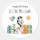 Add a touch of adventure and personalisation to your celebration with our 'Happy Birthday' Zebra Sticker Label. This sticker features a joyful zebra surrounded by beautifully wrapped birthday gifts and colourful balloons. Personalise it with the name of your choice, and if 'Happy Birthday' isn't your style, change it to something like 'Oliver's Zebra Party.