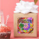 The size is perfect and the design has a softness with the beautiful flowers around the edges. The black lettering on the white background is sharp. It stands out beautifully. I love the Mixture of font styles as it catches the eye.