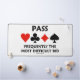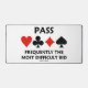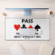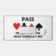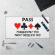Showcase your wry sense of duplicate bridge humour with this desk mat featuring the four card suits along with the truism saying: "Pass Frequently The Most Difficult Bid".  Make yourself and others do a double-take on your deep understanding of the conundrum involved in bidding your bridge hands with a dose of bridge attitude today!