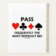 Showcase your wry sense of duplicate bridge humour with this planner featuring the four card suits along with the truism saying: "Pass Frequently The Most Difficult Bid". Let others know that you understand the conundrum involved in bidding your bridge hands with a dose of bridge attitude today!