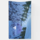 The sparkling snow-covered path is hemmed in by dark fir trees. On the far side of the cleft a translucent glowing fairy castle awaits the enchanted traveller on his journey to fairyland.