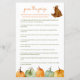 This design is part of the "A Little Pumpkin" baby shower collection. It features cute stationery with watercolor autumn pumpkin illustrations in fall tones like orange, terracotta, sage green and brown, and woodland creatures like a grizzly bear.