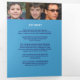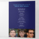 Simple modern graphic funeral program in dark blue, cyan, and white. Replace the sample text and placeholder photos with your own special photos and memorial order of service, obituary, reading or poem, and acknowledgements, and personal information details. Other matching funeral and keepsake remembrance items are available. Text graphic 'The passing of a legend' and design by www.mylittleeden.com