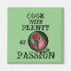 Radiant red flower with text "Cook With Plenty Of Passion" on dark green background