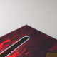 An allegorical depiction of Passover. With a red sunset sky presaging the tragedy that would shortly befall the Egyptians, Moshe's arm holds aloft his staff from behind pyramids in promise of the exodus to occur that night. Customise by adding your own text. The blue and white stripes of Moshe's sleeve evoke the prison garb of those held in Holocaust concentration camps.