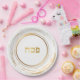 This Passover set a stunning (and worry-free!) Pesach Seder Table with our beautiful, Casual Rustic Gold swash Paper plates Hebrew Text Reads "Pesach" If you need help or would like to see a variation on this design please message us or email BestDressedBread@gmail.com