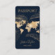 Passport Travel Agency World Map Boarding Pass Business Card with tropical florals