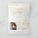 The front cover features an elegant gold heart, symbolizing your love and the journey you’re about to begin together. Inside, your favorite couple’s photo brings the invitation to life, creating a personal and meaningful reveal. All destination details are fully customizable, including your wedding location, names, date, font colors, stamp color and details, and event information, making this design perfect for weddings near or far.