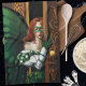 A red haired Irish fairy opening a door asking for the password before entering