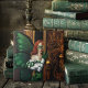 A red haired Irish fairy opening a door with a carved green man on it asking for the password before entering