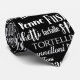Unique Italian food themed necktie featuring a typographic pattern of various tasty pasta names in white on black