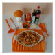 A COLOURFUL PICTURE OF PASTA ON AN ORANGE TRAY IN A DELIGHTFUL ARRANGEMENT