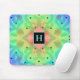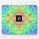 Brighten up your computer desk with this very unique mousepad. The design is an abstract pattern starburst in pastel rainbow colours. Personalise it with your choice of initial.