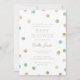 A scatter of pretty pastel dots in aqua, mint green, coral pink and tan with accents of faux copper foil make this baby shower invitation a stylish choice for your chic and modern mother to be. Easy to edit text allows for maximum design flexibility while a QR code sends invited guests strait to the online registry for easy gift shopping. The colours can be gender neutral or work for a baby girl or boy without being cutesy.