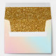 A pretty unicorn envelope with an adorable little baby unicorn in the bottom left corner, with wings and a rainbow-coloured horn. There is another colourful horn on the back flap of the envelope, and a sparkling gold glitter pattern on the inside. This envelope was made especially to match an existing birthday invitation which is part of the set, and you can check it out here: https://www.zazzle.com/pastel_and_gold_glitter_unicorn_birthday_invitation-256822904581523067