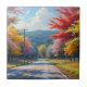 A winding country road drifts gently through a dreamy landscape of pastel autumn trees, where soft pinks, golden yellows, fiery reds, and misty greens meet beneath a bright blue sky. The scene feels calm, nostalgic, and quietly hopeful, capturing the beauty of a peaceful journey surrounded by nature’s changing colors. Painted in a soft watercolor style with a whimsical, storybook touch, this artwork blends cottagecore warmth with folk-inspired charm and an airy, open sense of escape. The balanced composition and luminous color palette evoke slow afternoons, scenic drives, and the gentle rhythm of rural life. AI generated artwork.