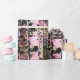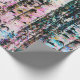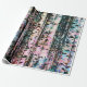 Add rustic flare to any gift with this rugged yet elegant birch tree pattern wrapping paper, done in shades of pink, blue, and aqua.