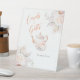 This table sign is adorned with delicate rosy floral patterns, setting a romantic and sophisticated tone for the event.